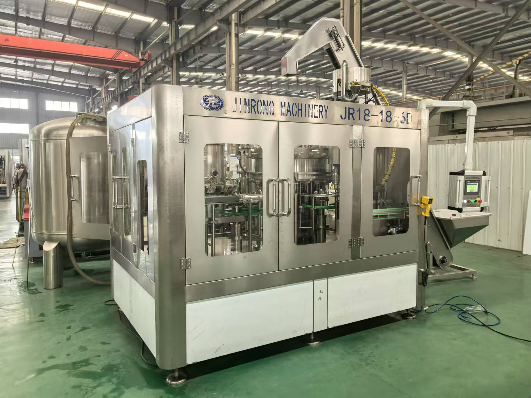 金榮飲料機(jī)械廠家制造供應(yīng)的全套飲料生產(chǎn)線、果汁生產(chǎn)線、碳酸飲料生產(chǎn)線、小瓶礦泉水灌裝設(shè)備、大瓶水生產(chǎn)線、桶裝水生產(chǎn)線、純凈水灌裝機(jī)設(shè)備、瓶裝礦泉水灌裝生產(chǎn)線、易拉罐啤酒灌裝機(jī)等系列產(chǎn)品主要運(yùn)用在純凈水,礦泉水,果汁,茶,熱灌裝飲料,功能飲料,含汽飲料,碳酸飲料,啤酒等液體飲料灌裝生產(chǎn)。其供應(yīng)的灌裝生產(chǎn)線可配套全自動(dòng)吹瓶機(jī)、水處理設(shè)備、前處理設(shè)備、飲料殺菌設(shè)備、貼標(biāo)機(jī)、包裝機(jī)等相關(guān)配套機(jī)械設(shè)備。金榮多年來(lái)的設(shè)備研發(fā)和制造經(jīng)驗(yàn),讓金榮機(jī)械為飲料生產(chǎn)企業(yè)和水廠等提供了穩(wěn)定的全套灌裝生產(chǎn)線設(shè)備。